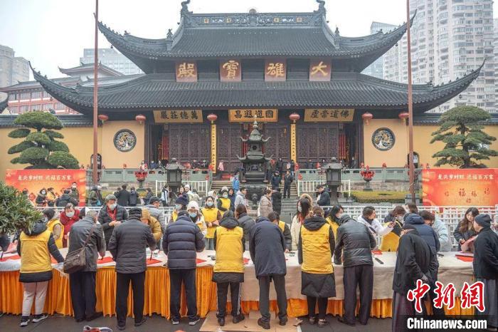 新春送福活動(dòng)現(xiàn)場?!∩虾S穹鸲U寺供圖