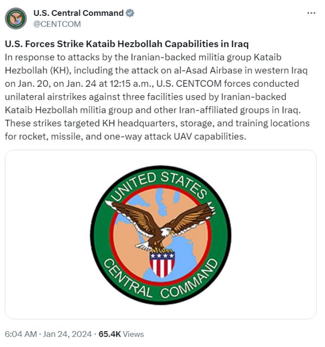 據報道,奧斯汀在聲明中表示,此次襲擊“是對伊朗支持的民兵武裝在伊拉克和敘利亞針對美國和聯軍人員的一系列襲擊的直接回應”。他表示,襲擊目標是民兵武裝“真主黨旅”和其他武裝組織在伊拉克使用的3處設施。