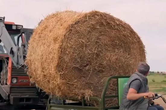 海外用戶使用“三蹦子”拉草垛。視頻截圖