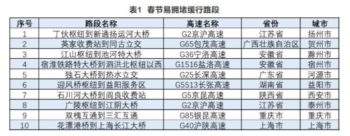 報(bào)告還公布了高速公路預(yù)計(jì)易發(fā)生擁堵緩行的路段、收費(fèi)站以及較繁忙的服務(wù)區(qū)。