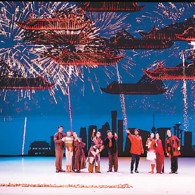 舞臺(tái)上,紅彤彤的燈籠、喜慶的春聯(lián)、熱鬧的廟會(huì)奏響了中國(guó)農(nóng)歷新年的序曲;“團(tuán)團(tuán)”和“圓圓”家的年夜飯彰顯了中國(guó)禮儀之邦的待客之道、尊老愛(ài)幼的傳統(tǒng)美德,一張全家福更傳達(dá)了中國(guó)人對(duì)親情的重視和對(duì)團(tuán)圓的向往;“胡桃?jiàn)A子”大戰(zhàn)“年”獸,則充滿童趣地演繹了“過(guò)年”的傳說(shuō);而當(dāng)寓意吉祥的仙鶴在蒼勁的松樹(shù)下迎著朝陽(yáng)翩翩起舞,西方芭蕾藝術(shù)在中國(guó)文化意象中煥發(fā)出了美妙的東方神韻;扇子舞、絲綢舞、風(fēng)箏舞、陀螺舞……一個(gè)個(gè)頗具中國(guó)元素的慶典場(chǎng)面讓阿聯(lián)酋觀眾游歷在瑰麗多姿的中國(guó)傳統(tǒng)文化中。