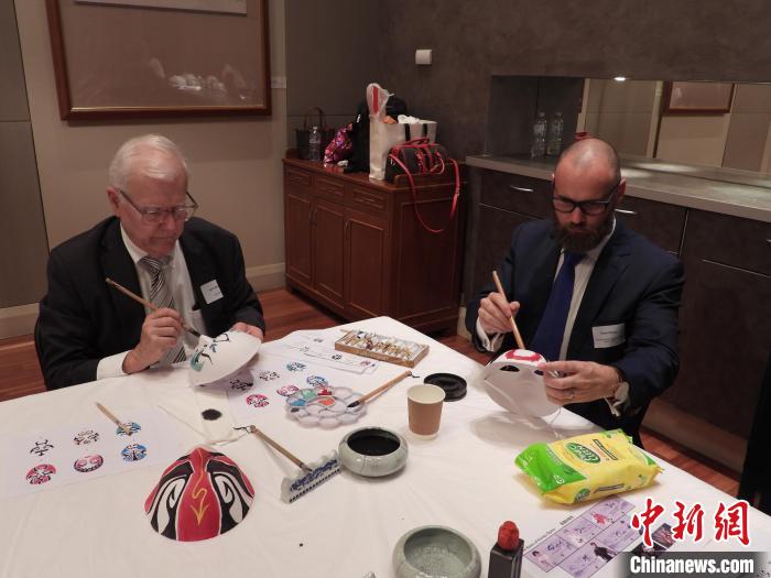 當晚的招待會現(xiàn)場上,來賓們互致新春祝福,并興致勃勃地體驗中國書法、描畫臉譜、茶藝等文化項目,氣氛友好、祥和、熱烈。(完)