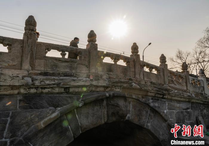 2023年2月22日,位于北京市西城區(qū)的“北京中軸線第一橋”——萬寧橋映襯在陽(yáng)光之下。萬寧橋始建于元代,為單孔石拱橋,橫跨在什剎海前海東岸的玉河上,西鄰什剎海前海,是《北京中軸線保護(hù)管理規(guī)劃(2022年—2035年)》確定的遺產(chǎn)區(qū)要素之一。中新社記者侯宇攝
