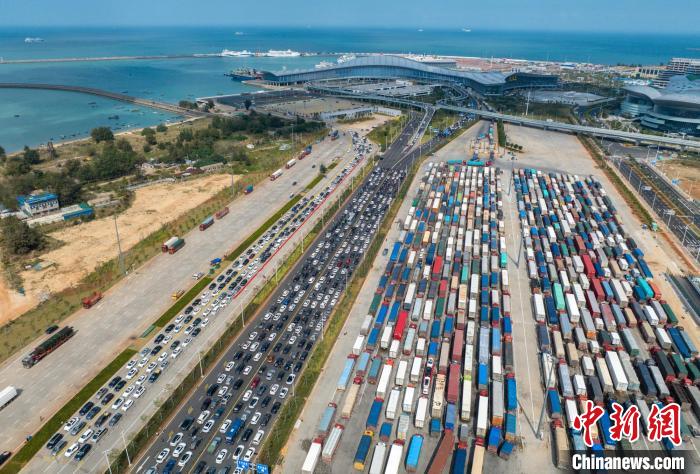 2月5日??谛潞8?,等待出島的車輛被分流為小車和貨車。中新網(wǎng)記者駱云飛攝