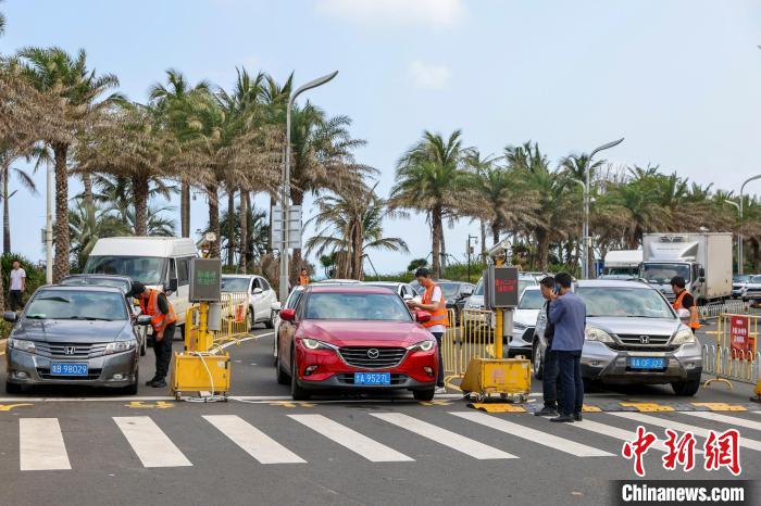 記者5日中午在??谑虚L(zhǎng)樂路的小車查驗(yàn)點(diǎn)看到,雙向4車道被改為東往西單向行駛,過海的小車排隊(duì)經(jīng)查驗(yàn)點(diǎn)時(shí),聯(lián)網(wǎng)的攝像頭拍下車牌信息,一旁電子屏馬上就顯示車主所購(gòu)輪渡的發(fā)船時(shí)間。若發(fā)船時(shí)間在三個(gè)小時(shí)內(nèi),車輛直行直通港口。若超過三個(gè)小時(shí),執(zhí)勤人員引導(dǎo)車輛駛離進(jìn)港通道。