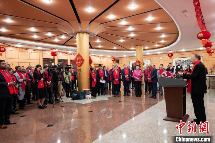張軍在致辭時(shí)向現(xiàn)場來賓致以節(jié)日問候并向祖國人民拜年。他說,春節(jié)是中國最古老、最盛大的傳統(tǒng)節(jié)日,象征著團(tuán)圓與美滿,傳承著中華文明的基因,賡續(xù)著中華文化的血脈,凝聚著全球華人的家國情懷。春節(jié)作為農(nóng)歷新年也在越來越多走向世界。前不久,在中國和許多國家的積極推動(dòng)下,聯(lián)合國大會(huì)通過決議,將春節(jié)(農(nóng)歷新年)確定為聯(lián)合國假日。這進(jìn)一步豐富了春節(jié)的世界意義,為更多的人走近中國、品味中國、體驗(yàn)中國提供了機(jī)會(huì)。