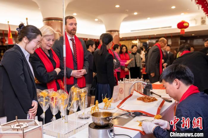 招待會(huì)上,來自浙江省的工藝美術(shù)大師和非遺傳承人精心準(zhǔn)備了各具特色的中國非遺和年俗互動(dòng)項(xiàng)目,來自美國西北大學(xué)的音樂家演唱了激情澎湃的《為祖國干杯》和熱鬧喜慶的《龍船調(diào)》。來賓們紛紛表示,期待新的一年繼續(xù)與中國攜手努力,建設(shè)更美好的世界。(完)