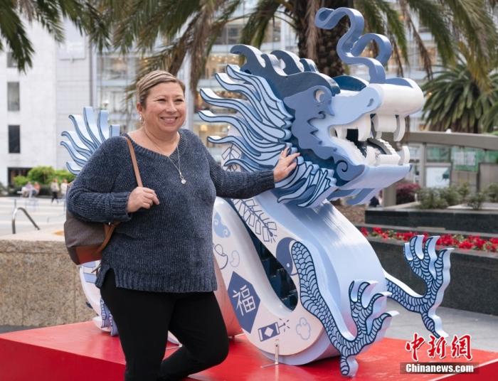 為了迎接中國農(nóng)歷龍年,美國舊金山在不同地點展出設(shè)計風(fēng)格各異的龍雕像,包括“青花瓷龍”“天玉龍”“平安龍”“彩虹龍”和“金運龍”。美國郵政還發(fā)行了龍年生肖紀(jì)念郵票,金色象征繁榮,紅色代表好運。