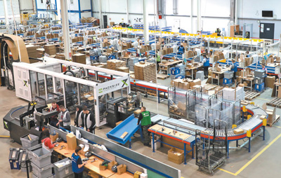 在小城東郊的工業(yè)開發(fā)區(qū),MBB物流公司的智能倉庫里一片忙碌景象:十幾名工人在智能機器人的協(xié)助下,將一件件快遞包裹進行快速貼碼分裝,并通過傳送帶直接送至物流貨車車廂內(nèi)。24小時內(nèi),這些快遞就會被送到波蘭、德國的消費者手中;48小時內(nèi),其他歐盟國家的消費者也能收到各自的商品。因商家需在農(nóng)歷新年假期到來之前集中補貨,MBB物流公司業(yè)務量猛增,但各處運轉(zhuǎn)都井然有序。