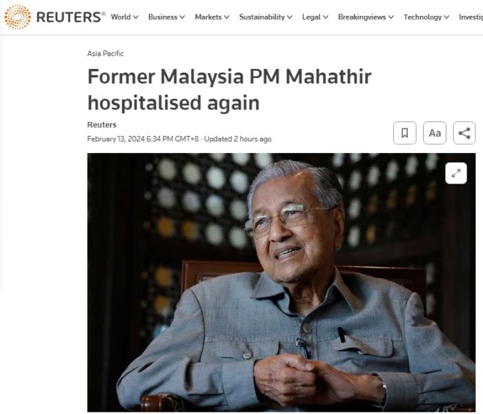 據(jù)此前報道,馬哈蒂爾曾于1989年因心臟病發(fā)作,在國家心臟中心接受心臟搭橋手術(shù),并在2007年于該中心接受第二次手術(shù)。