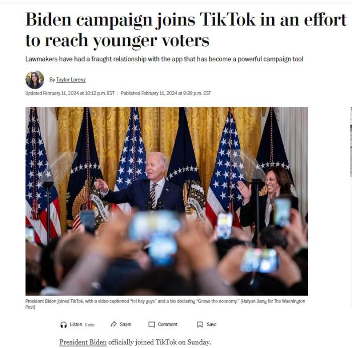 中新網2月12日電 綜合報道,當地時間2月11日,美國總統(tǒng)拜登正式加入了社交平臺TikTok。