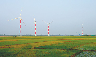 科巴風(fēng)電項(xiàng)目所在地區(qū)稻田連片,綠意盎然,成群的水牛在風(fēng)機(jī)下安靜地吃草。該項(xiàng)目將環(huán)保要求納入整個(gè)建設(shè)周期,為上下游企業(yè)帶來經(jīng)濟(jì)效益的同時(shí),有力推動(dòng)了當(dāng)?shù)乜沙掷m(xù)發(fā)展,對(duì)該國(guó)風(fēng)電市場(chǎng)開發(fā)起到了很好的示范作用。