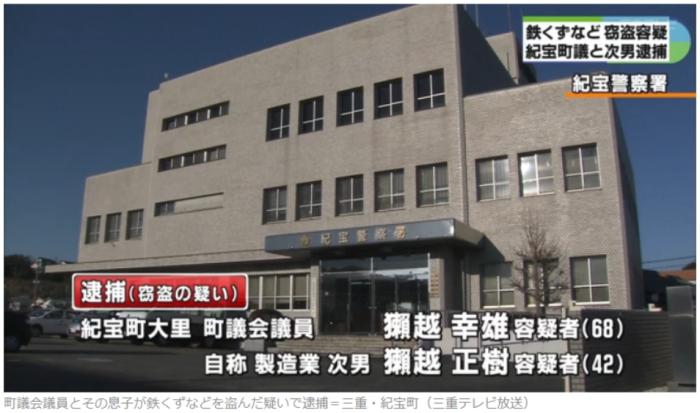 經(jīng)調(diào)查,兩名竊賊中一人是三重縣紀(jì)寶町的市議會議員,另一人是他兒子。