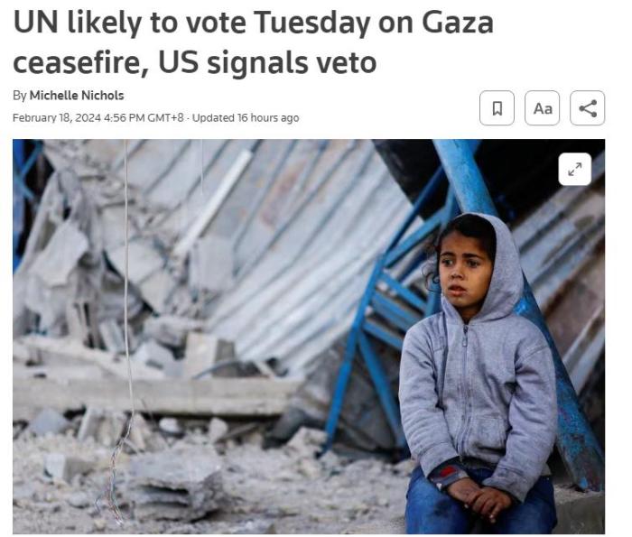 中新網(wǎng)2月19日電 綜合報道,外交人士表示,聯(lián)合國安理會或?qū)⒃诋?dāng)?shù)貢r間20日就阿爾及利亞提出的加沙人道?;饹Q議進行投票,但美國暗示將在該投票中實施一票否決。