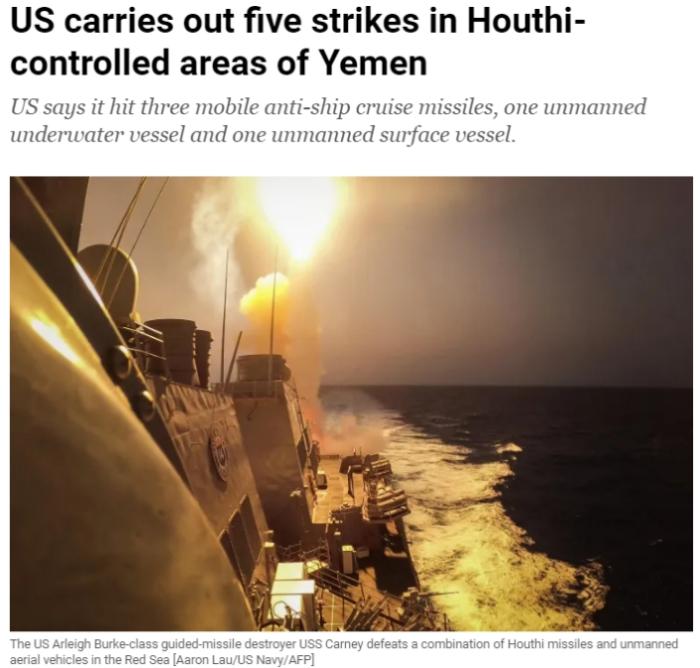 消息稱,美軍擊中了胡塞武裝的三枚反艦巡航導彈、一艘無人水面艦艇和一艘無人潛航器。