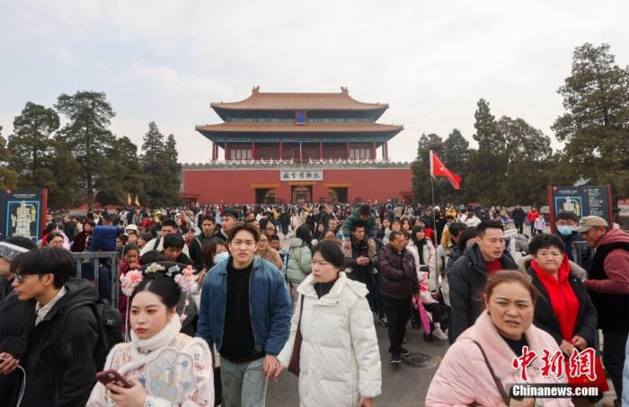 2月17日,游客走出北京故宮博物院。春節(jié)假期,北京旅游市場(chǎng)呈現(xiàn)火爆態(tài)勢(shì)。中新社記者 賈天勇 攝