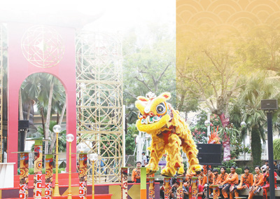 2月3日,在印尼雅加達(dá)翠貝卡廣場上,人們舉行舞獅表演喜迎新春。