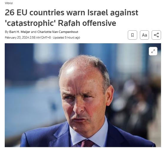 據(jù)報(bào)道,目前拉法已經(jīng)涌入了約150萬加沙地帶難民,愛爾蘭外長馬丁表示:“對拉法的進(jìn)攻絕對是災(zāi)難性的”。