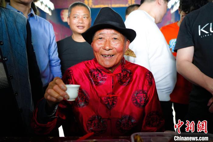 當天14時,永定區(qū)坎市鎮(zhèn)盧氏祠堂周圍人頭攢動,鞭炮齊鳴,十分熱鬧。大家從十里八村涌到祠堂前,待用香燭、三牲敬過“林婆太”后,兩名壯漢攙扶著一位滿臉通紅、一身酒氣的“酒醉公”。