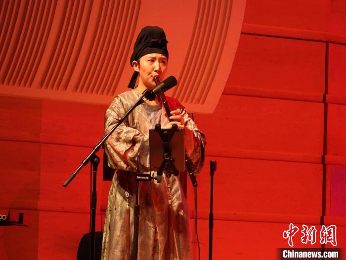 綾羅交織七千里,唯寄一夢寓長安。音樂會巧妙地為每一位樂手都設(shè)計了富有生命感的人物小傳——他們是敦厚善良的蒙古牧人,是耿直忠誠的大唐武將,是堅定隱忍的宮廷樂伎,還有潑辣開朗的康國公主......《絲路回響》《滿庭芳》《胡璇女》《菩薩蠻》《風(fēng)竹》《若相逢》《安詳》等15首精心編排的曲目通過笛子、琵琶、古箏、馬頭琴、二胡、鼓、手鼓、貝斯、鍵盤等樂器表演的相互碰撞,時而娓娓道來,時而大氣磅礴、時而峰回路轉(zhuǎn),時而慷慨激昂,讓觀眾沉浸其中。特別是中國最古老的樂器之一塤的出場,帶領(lǐng)觀眾穿越時空,盡情感受中華文化的源遠(yuǎn)流長。同時音樂會精心打造的表演服裝和妝容設(shè)計既華美又夢幻,讓觀眾身臨其境,感受中國音樂的獨(dú)特魅力,感受多元文化交流互鑒的激情洋溢。整場音樂會觀眾沉醉其中,掌聲一浪高過一浪。最后返場曲目新編澳大利亞傳統(tǒng)樂曲《剪羊毛》詼諧幽默,更是拉近了與現(xiàn)場觀眾的距離。