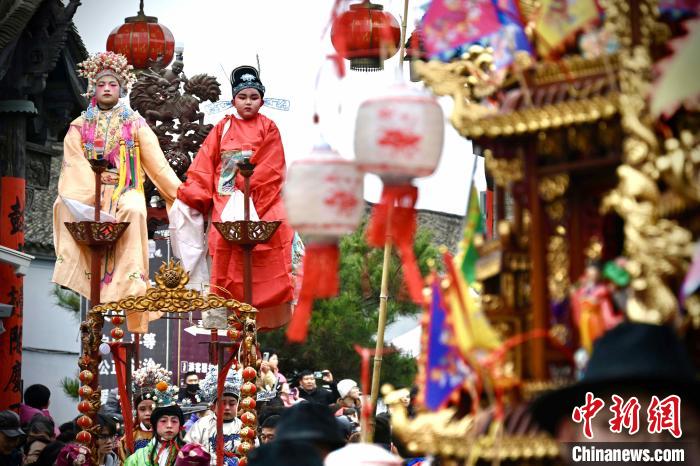 中新網(wǎng)寧波2月23日電 (方堃 蔣攀 駱佳明 葛鵬超)2月23日正值農(nóng)歷正月十四,浙江省寧波市寧??h前童鎮(zhèn)鼓亭館廣場(chǎng)上,人聲鼎沸,熱鬧非凡,一場(chǎng)延續(xù)百年的民俗活動(dòng)“前童元宵行會(huì)”在這里舉行。