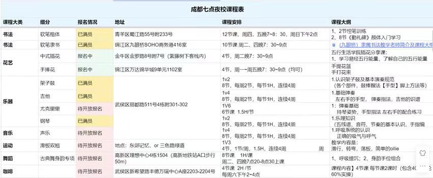 五花八門的副業(yè)她都嘗試過,目前比較穩(wěn)定、收入占比最大的是去年11月開始做的夜校。那段時(shí)間,年輕人上夜校的話題火爆,她發(fā)現(xiàn)成都還沒有,于是第一個(gè)在成都建起夜校社群,以組團(tuán)的人數(shù)優(yōu)勢(shì)去找商家談低價(jià)課,類似于興趣班的拼多多,目前社區(qū)差不多有5000人。