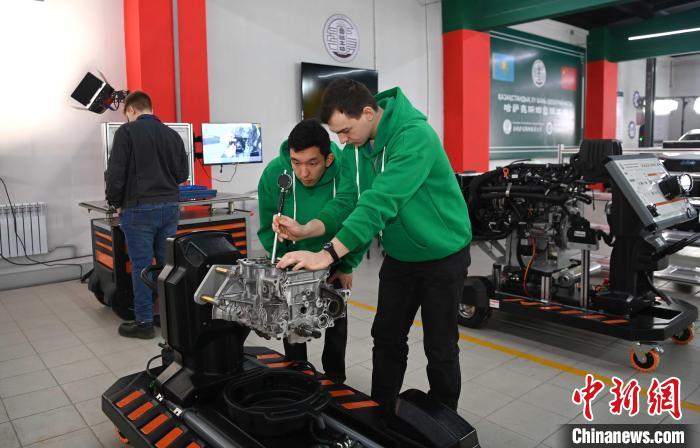 當?shù)貙W生在哈薩克斯坦魯班工坊內實操演練?! 」偨y(tǒng)府官網供圖