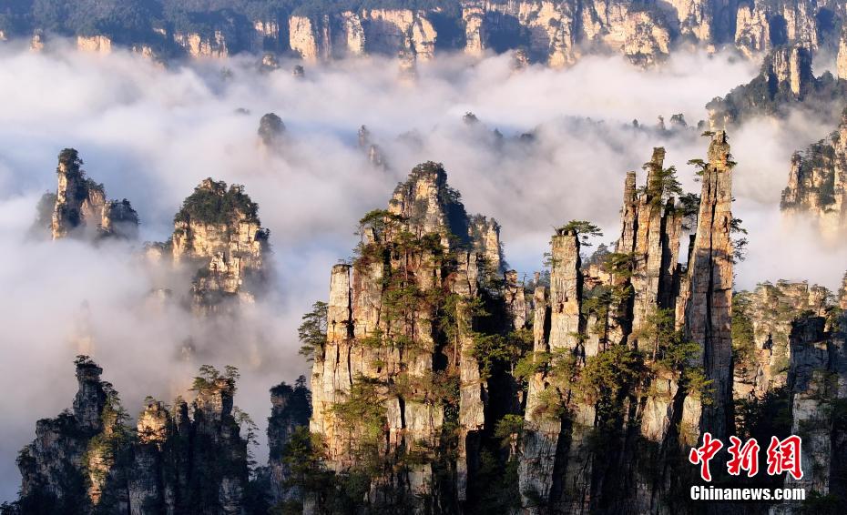 湖南張家界現(xiàn)壯美云海。吳勇兵 攝