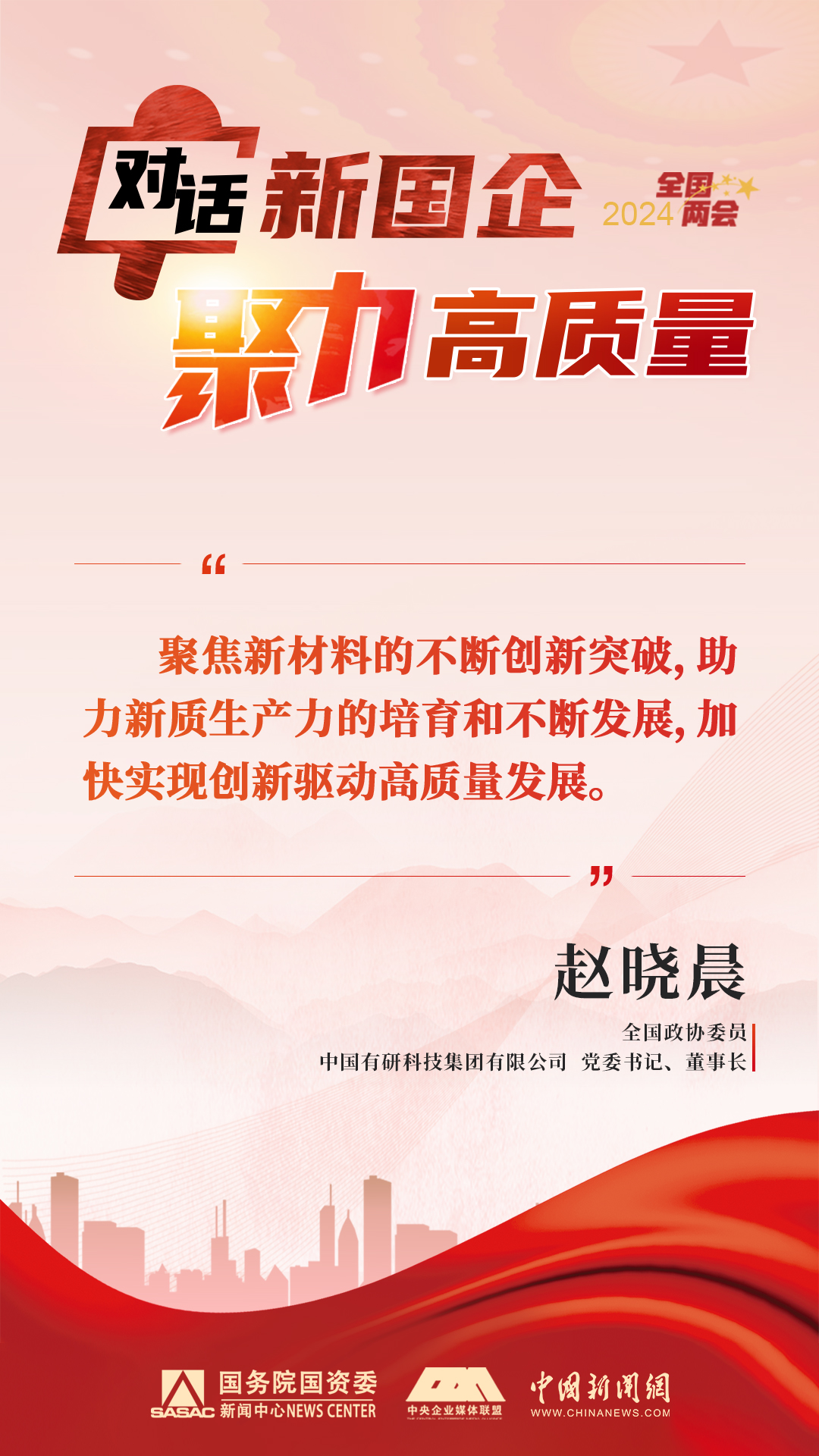 中新網(wǎng)北京3月6日電(記者 張尼) “我理解,科技創(chuàng)新是發(fā)展新質(zhì)生產(chǎn)力的核心要素;新材料突破是戰(zhàn)新產(chǎn)業(yè)、未來產(chǎn)業(yè),是新質(zhì)生產(chǎn)力孕育和發(fā)展的一個(gè)重要前提和基礎(chǔ)?!?全國政協(xié)委員,中國有研科技集團(tuán)有限公司黨委書記、董事長趙曉晨在“對話新國企·聚力高質(zhì)量”系列融媒體訪談中表示,要以新興產(chǎn)業(yè)發(fā)展引領(lǐng)新質(zhì)生產(chǎn)力形成,培育企業(yè)發(fā)展新動(dòng)能。