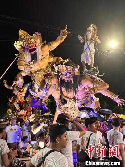 3月10日晚,巴厘島舉行盛大的“Ogoh-Ogoh”游行。隨著夜幕降臨,整個(gè)島嶼變得喧鬧起來(lái),每個(gè)村落的男女老少都匯聚在一起,參與到這場(chǎng)充滿儀式感的游行中。在巴厘島市中心的一處廣場(chǎng),抬“Ogoh-Ogoh”怪獸雕像的人們,伴隨著打擊樂(lè)和呼喊聲,將怪獸雕像晃動(dòng)起伏,模仿怪獸行走的姿態(tài),讓這些由竹子、紙張和膠合板制成的雕像看起來(lái)活靈活現(xiàn)。