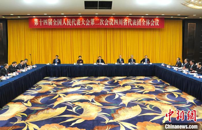 3月10日,出席十四屆全國(guó)人大二次會(huì)議的四川代表團(tuán)舉行開放團(tuán)組會(huì)議。中新社記者 崔楠 攝