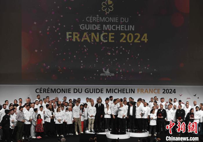 當(dāng)?shù)貢r(shí)間3月18日,2024年《米其林指南》法國(guó)版在法國(guó)中部城市圖爾出爐。2024年法國(guó)版指南新增62家星級(jí)餐館,這些餐館的經(jīng)營(yíng)者在當(dāng)天舉行的儀式上集體合影。中新社記者 李洋 攝