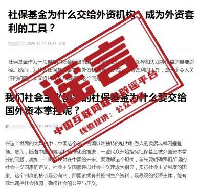 中新網(wǎng)3月18日電 據(jù)“互聯(lián)網(wǎng)聯(lián)合辟謠平臺(tái)”微信公眾號消息,近段時(shí)間以來,有少數(shù)網(wǎng)絡(luò)自媒體發(fā)布視頻稱,我國社會(huì)保險(xiǎn)基金“幾乎全部交給外資機(jī)構(gòu)管理”,且被用于“買賣A股”,質(zhì)疑社?;鸪蔀椤巴赓Y套利的工具”。經(jīng)中國互聯(lián)網(wǎng)聯(lián)合辟謠平臺(tái)向有關(guān)主管部門核實(shí)查證,前述言論均為不實(shí)信息。