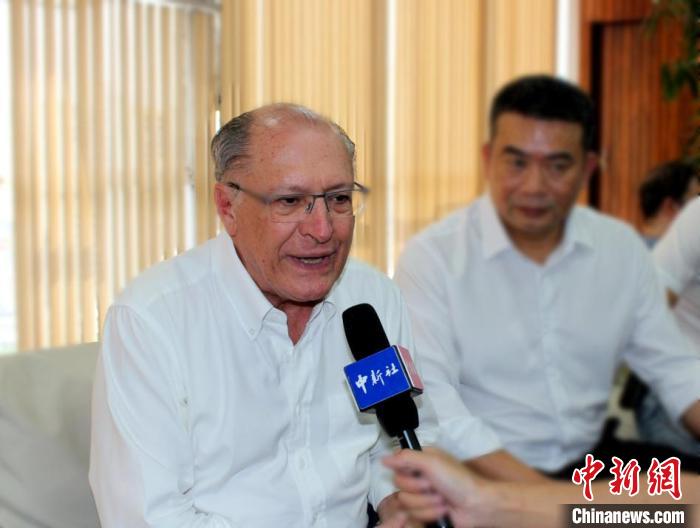當地時間3月16日,巴西圣保羅,巴西副總統(tǒng)兼發(fā)展、工業(yè)與貿易部長阿爾克明接受中新社記者專訪?!×趾?攝