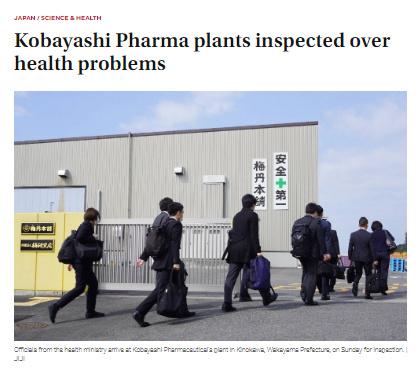 報(bào)道還稱,日本厚生勞動(dòng)省及大阪市政府相關(guān)部門在30日對(duì)已關(guān)閉的小林制藥公司大阪工廠進(jìn)行了現(xiàn)場(chǎng)檢查。
