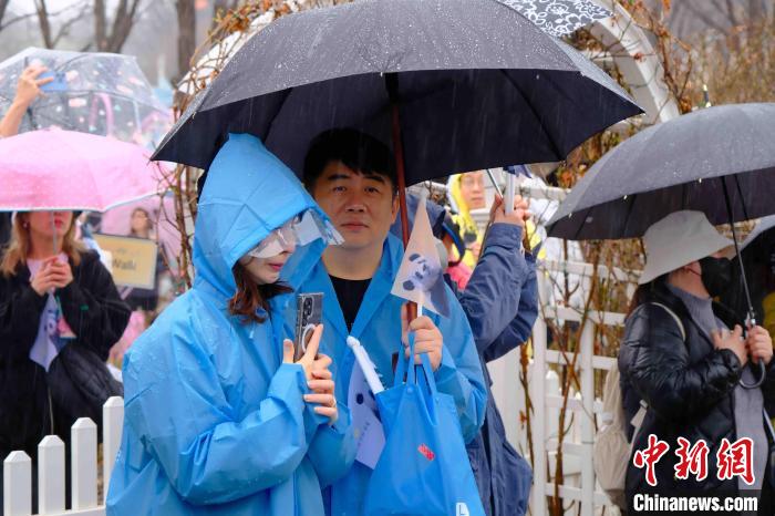 當(dāng)日上午8時許,中新社記者來到位于韓國京畿道龍仁市的愛寶樂園正門看到,盡管距離樂園正式營業(yè)還有約兩小時,樂園門外已有大批民眾冒雨排起長隊,等待送別“福寶”。