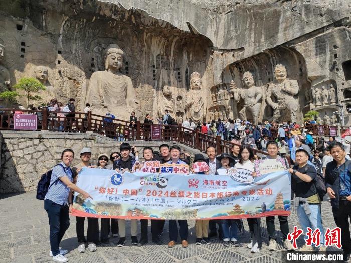 考察團(tuán)在龍門(mén)石窟合影。中國(guó)駐東京旅游辦事處供圖