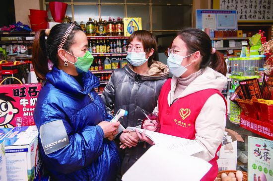 1月11日,在金華婺城區(qū)城北街道站前社區(qū),放寒假回金的大學生傅雨曦,穿上紅馬甲協(xié)助社區(qū)工作人員到沿街店鋪核查防疫措施落實情況,打電話了解外地返金人員行程及疫苗接種情況。傅雨曦說,她是共青團員,和同學報名參加婺城大學生寒假疫情防控志愿服務(wù),在社區(qū)、疫苗接種點等地做公益服務(wù)。(時寬兵)