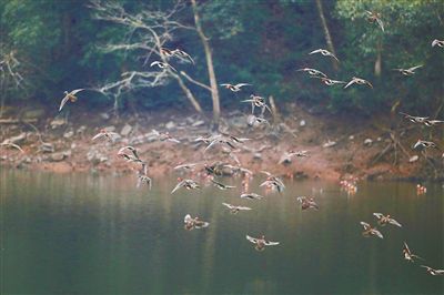 四明山區(qū)域發(fā)現(xiàn)大規(guī)模野生鴛鴦種群。趙圣軍攝