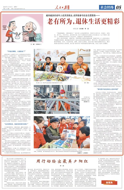 老年人在言傳身教、化解矛盾、傳幫帶等方面具有獨(dú)特優(yōu)勢。隨著中國人口人均壽命延長和健康狀況改善,越來越多的老年人由過去退休在家休閑娛樂、頤養(yǎng)天年,轉(zhuǎn)為繼續(xù)參與社會(huì)服務(wù)和建設(shè)。如今,無論是科技、教育、醫(yī)療衛(wèi)生領(lǐng)域,還是大街小巷的志愿服務(wù)站點(diǎn),都活躍著大批退休老人的身影,他們在“老有所為”中找到新的價(jià)值和樂趣,活出了老年人的精彩。