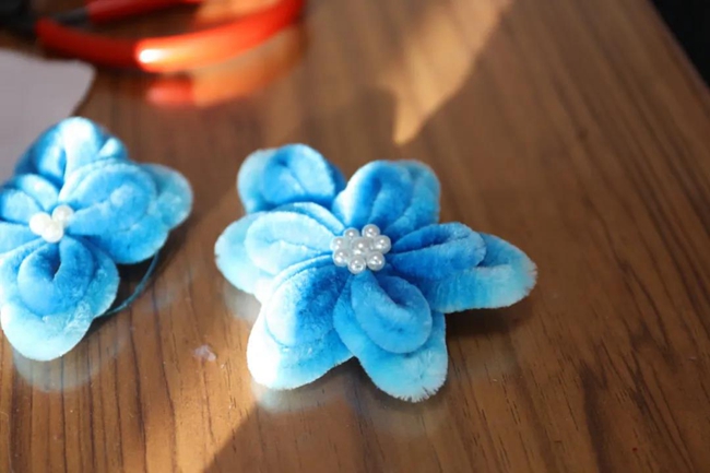 為傳承和發(fā)揚(yáng)傳統(tǒng)技藝,工作室通過為影視作品設(shè)計制作絨花,與北京不少單位和社區(qū)合作,設(shè)置絨花制作體驗項目、開展培訓(xùn)等多種方式,吸引市民認(rèn)識絨花,傳承學(xué)習(xí)絨花制作技藝。目前,懷柔區(qū)楊宋鎮(zhèn)共有40多名村民參加定期培訓(xùn),5名村民培訓(xùn)結(jié)束后繼續(xù)留在工作室工作,并參與了冬奧會絨花制作工作。