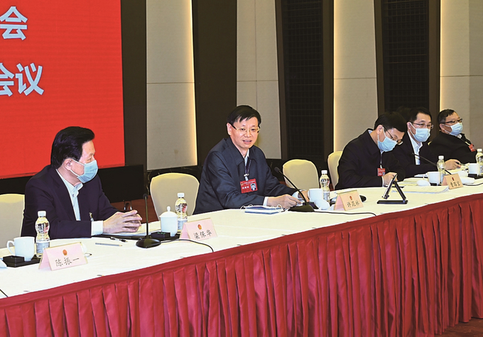 蘇州代表團氣氛熱烈,曹路寶、吳慶文、李亞平、黃欽、徐惠民、劉慶、范力、沈彬、周榮等代表先后發(fā)言。大家一致認為,政府工作報告堅持以習近平新時代中國特色社會主義思想為指導,全面貫徹黨的十九大和十九屆歷次全會精神,認真落實習近平總書記對江蘇工作重要指示要求,緊緊圍繞省第十四次黨代會部署,體現(xiàn)了捍衛(wèi)“兩個確立”的高度自覺、服務全國大局的強烈擔當、推動高質(zhì)量發(fā)展的戰(zhàn)略定力、人民至上的深厚情懷,是一個貫徹中央精神、體現(xiàn)省委要求、符合江蘇實際、回應人民期待的好報告。大家還圍繞打造創(chuàng)新生態(tài)、發(fā)展數(shù)字經(jīng)濟、產(chǎn)業(yè)集群升級、助推長三角一體化發(fā)展、促進共同富裕、補齊民生短板等提出了意見建議。許昆林邊聽邊記,與大家不時互動交流。他說,過去一年,全省上下在以習近平同志為核心的黨中央堅強領導下,高水平全面建成小康社會,勝利完成省十三屆人大四次會議確定的主要目標任務,在風浪中穩(wěn)住了發(fā)展大局、實現(xiàn)了良好開局,“強富美高”新江蘇現(xiàn)代化建設邁出堅實步伐。大家提出的意見建議,我們將逐項梳理、深入研究、充分吸納,進一步改進政府工作。