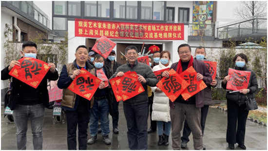 現(xiàn)場,朱者赤還即興提筆,墨躍紅紙,以倒序筆畫寫下福字,以此寄予“福到了”的新年祝福。作為入駐林家藝術(shù)村的第一批自由職業(yè)藝術(shù)家,朱者赤認(rèn)為,鄉(xiāng)村的自然恬淡能為藝術(shù)家的創(chuàng)作帶來許多靈感,而藝術(shù)賦能也會(huì)對美麗鄉(xiāng)村建設(shè)會(huì)起到推進(jìn)作用,他希望自己能在其中發(fā)揮作用,在不斷創(chuàng)作創(chuàng)新的同時(shí),讓更多藝術(shù)美走進(jìn)鄉(xiāng)村中去。