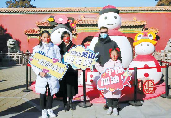春節(jié)期間,游客在景山公園參與冬奧主題游園活動(dòng)。