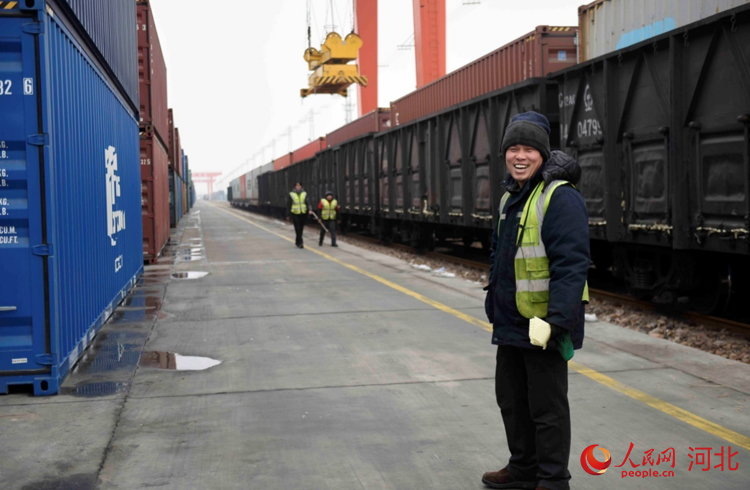 “基本上每天一列,春節(jié)期間貨運(yùn)比較繁忙,達(dá)到了每天兩列。”石家莊國際陸港事業(yè)部經(jīng)理王紅根介紹說,“這兩千多個(gè)集裝箱也就是四五天的事。”他指著鐵軌旁排列的望不到頭的集裝箱說。從石家莊國際陸港開始運(yùn)營以來,王紅根就開始在這里工作,幾乎每天都在崗的生活對他來說已經(jīng)習(xí)以為常。這幾年,國際陸港開行的班列越來越多,他的工作也越來越忙。