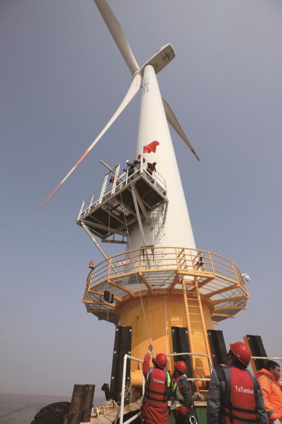 “首個站點選取這個位置,是為了最大范圍覆蓋遠海。”吳維國介紹,此次5G基站建設是為80米高的風機專門“定制”:結(jié)合海上航道規(guī)劃提前勘察設計,創(chuàng)新研發(fā)輕便的小型天線,并采用“80米+25米”的雙平臺建設。“基站建在80米高處可以實現(xiàn)遠覆蓋,覆蓋范圍達到50公里。”吳維國解釋說,考慮到風機的承重和安裝空間等因素,風機頂端80米處安裝新型天線設備,同時,借助25米高的平臺,安裝傳統(tǒng)5G天線設備實現(xiàn)周邊10公里的厚覆蓋,上下疊加形成互補,保障該區(qū)域5G信號穩(wěn)定覆蓋。