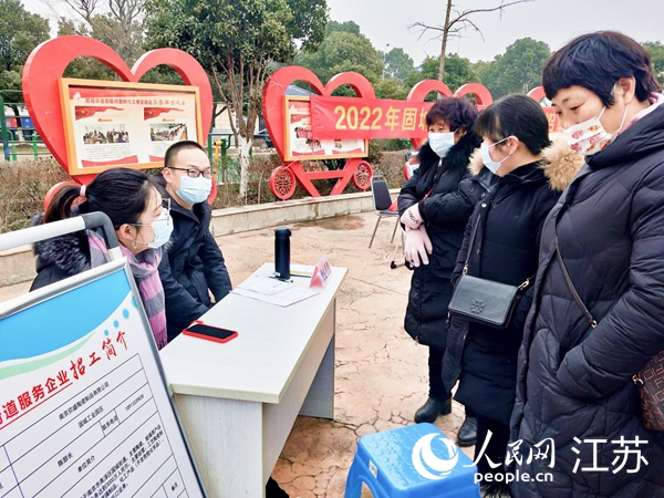 固城街道“春風(fēng)行動(dòng)”企業(yè)復(fù)工復(fù)產(chǎn)專場(chǎng)招聘會(huì)現(xiàn)場(chǎng) 應(yīng)聘人員查看招工簡(jiǎn)介??琢钪t攝