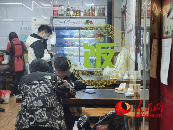 不遠(yuǎn)處的星州街上,當(dāng)晚有多家餛飩、面館在內(nèi)的小吃店正在營業(yè)。當(dāng)記者提出在店內(nèi)就餐時,有兩家餐飲店表示可以店內(nèi)就餐,但時間不要太長,一旦被發(fā)現(xiàn)就會被關(guān)停。