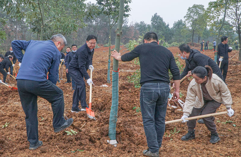 2月28日上午,湖北省應城市 “四大家”領導,來到有名店林場義務植樹示范基地,參加互聯網+全民義務植樹活動。他們通過互聯網+全民義務植樹小程序認領黃梨木、金絲楠、野黃桂等名貴苗木1000多株。在該市,網民可通過互聯網平臺程序,自愿以捐資代勞或投工投勞等形式,通過線上、線下雙途徑負責一定數量的樹木種植、管護。該市有名店、團山、伍山、燒香臺、草山、老觀湖等8處義務植樹基地,供網民選擇認養(yǎng)認領。(圖/文 鄭毅、馬友忠)