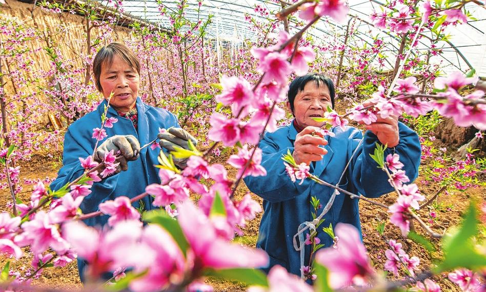 2月24日,夏縣南大里鄉(xiāng)南北晉村郭老蔬菜種植專業(yè)合作社社員在大棚內(nèi)給油桃疏花。該社根據(jù)本村地理氣候特點(diǎn),從山東引進(jìn)新品種,搭建11個大棚發(fā)展新品種油桃。該油桃成熟早、酸甜可口,遠(yuǎn)銷四川、河北等地,畝收入達(dá)2萬多元。(薛俊攝)